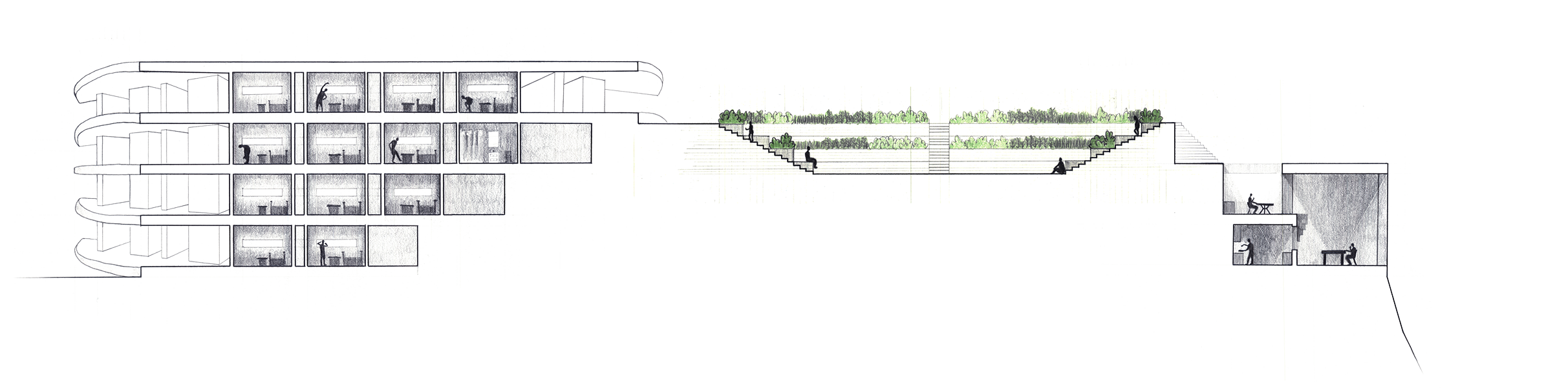For this individual project, I designed a monastery for 20 monks, located in a mountainous, tree-covered coastal region. The concept revolved around an imaginary group who worshiped the sun and moon, inspired by the indigenous peoples of South America. The monastery was designed around a central garden, which also functioned as a place of worship and communion.